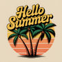 Vintage-inspired summer typography with palm silhouettes and sunset tones.
